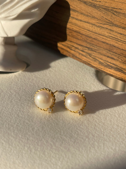 White Freshwater Pearl Classic Earrings In Sterling Silver