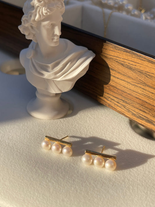 White Freshwater Pearl Balance Beam Earrings In Sterling Silver