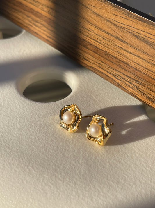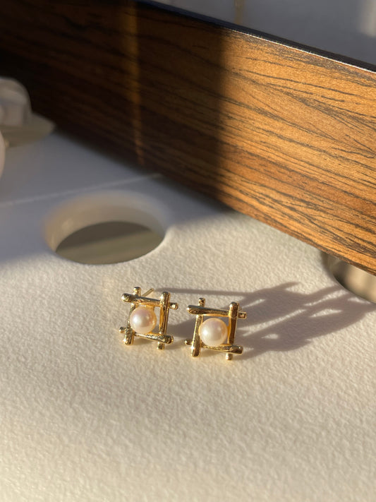 White Freshwater # Shape Earrings In Sterling Silver